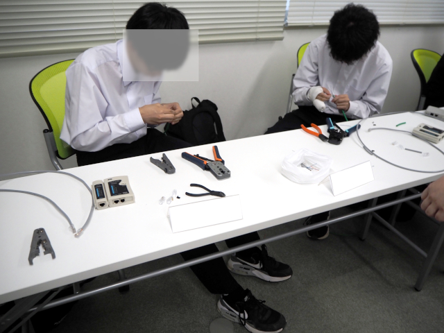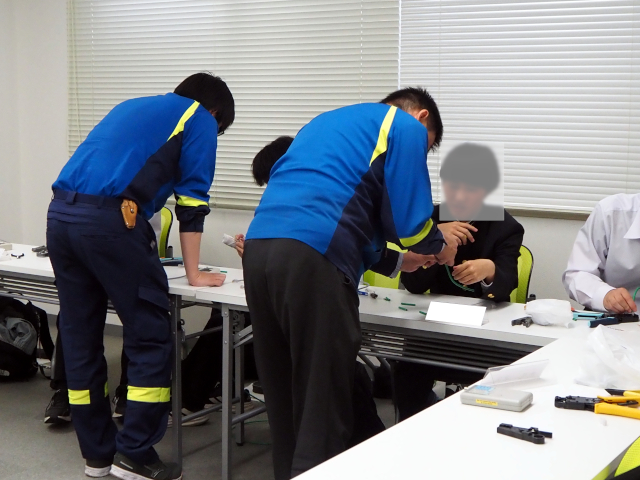 5名・4名の2班に別れ、それぞれ1日ずつ、午前はアクセス工事を、午後はネットワークの事を学び、両日とも無事終了する事が出来ました。